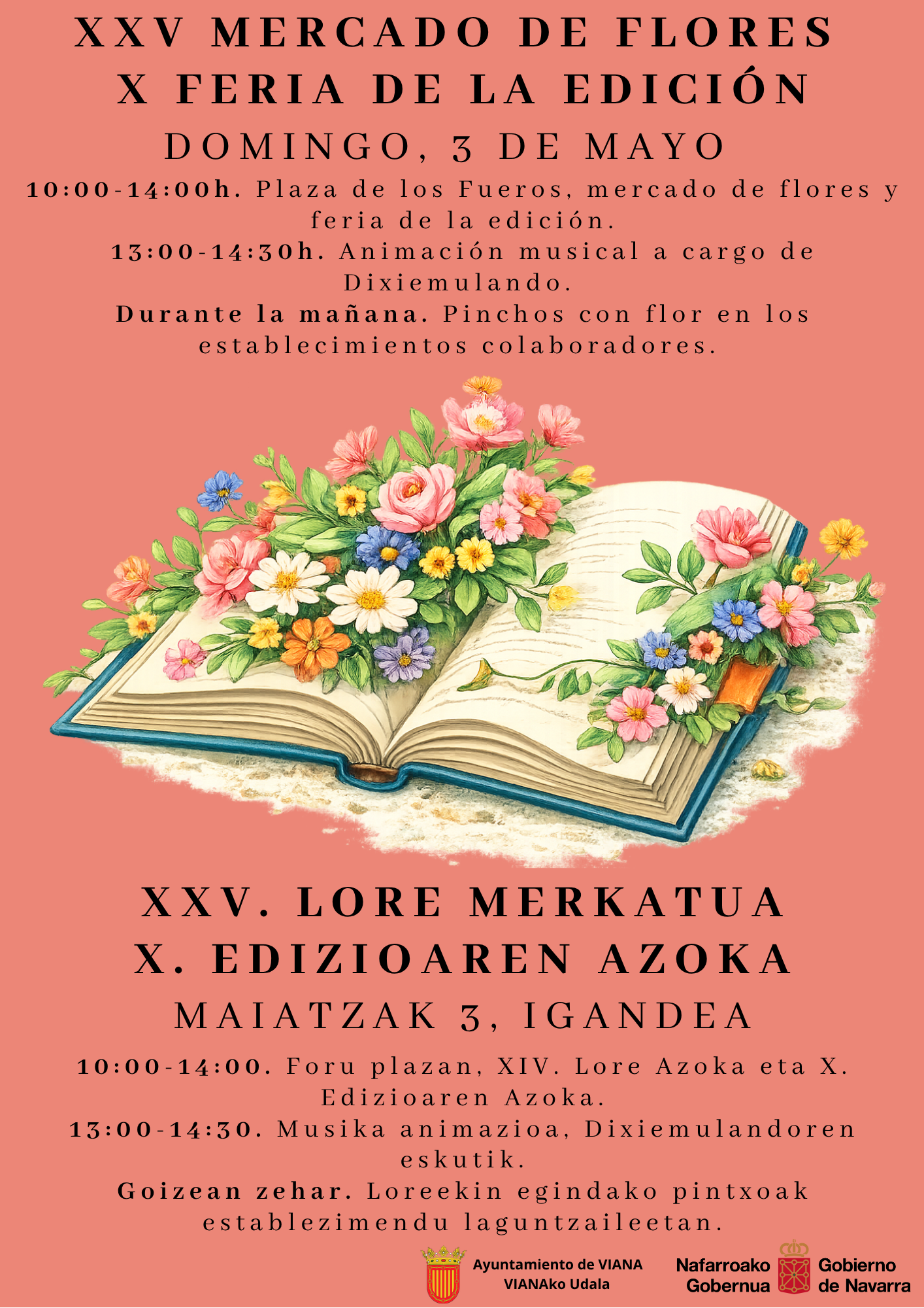El próximo domingo, 3 de mayo, la Plaza de los Fueros acogerá la celebración del XXV Mercado de Flores y la X Feria de la Edición.