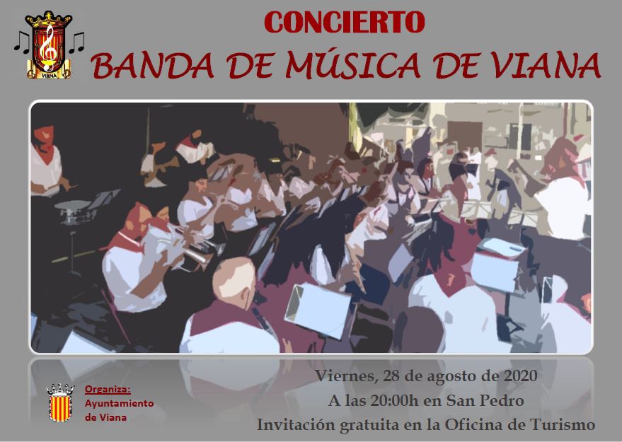 El viernes 28 de agosto a las 20h00, en las Ruinas de San Pedro, la Banda Municipal de Viana realizará un Concierto organizado por el Ayuntamiento de Viana.