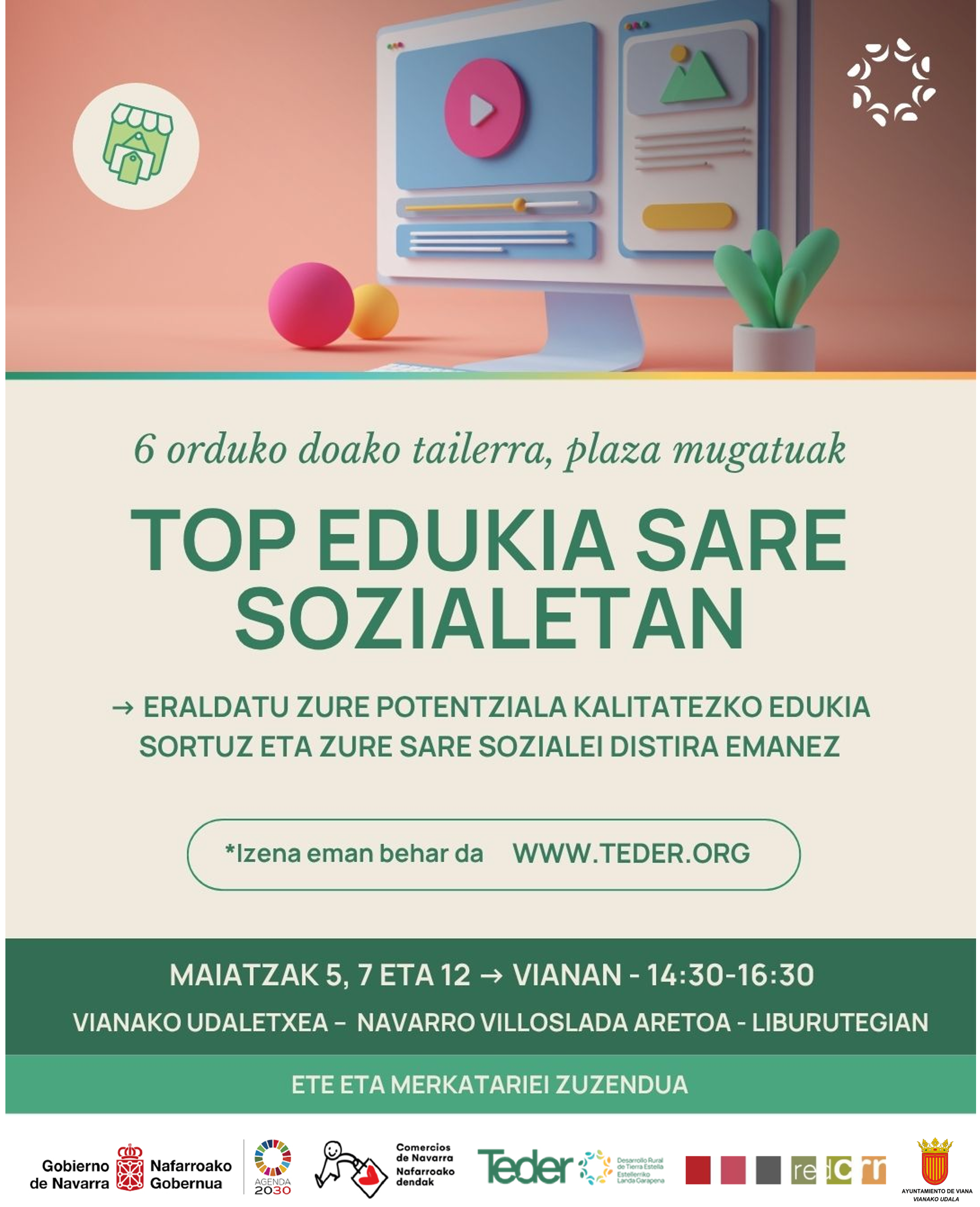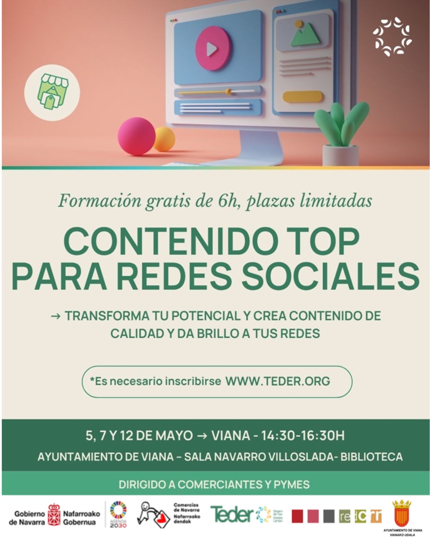 El Servicio de Comercio de TEDER, en colaboración con el Ayuntamiento de Viana, ha organizado el taller gratuito “Creación de contenidos top para redes sociales”, una iniciativa dirigida a comercios y pequeños negocios interesados en profesionalizar su comunicación digital.